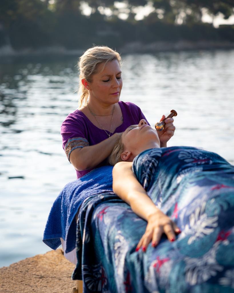 Massage du Visage surprenant et puissant, régénérant, liftant, repulpant, remodelant, mais aussi profondément relaxant et réconfortant, il apporte, par ses gestuelles ouvertes et liftantes une réjuvénation et une restructuration globale du visage et participe à la régénération des tissus et de l'énergie.